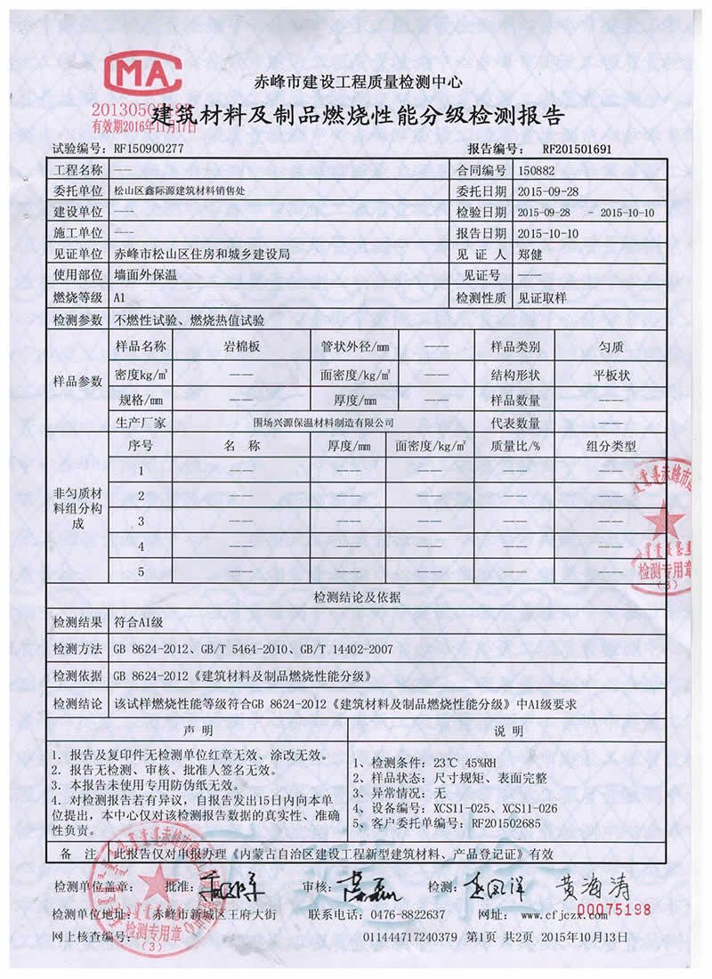 >>>建筑材料及制品燃燒分級檢測報告.